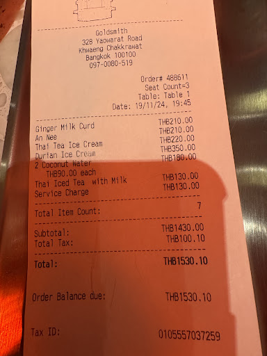 The prices are most definitely on the high side, we paid 1,300ish THB just for desserts, and unfortunately we could not appreciate any of them. The coconut water was off the packets, not fresh ones. The Thai milk tea ice cream which was recommended by the service lady was awful, to me, way too bitter. That said I’ll give it credit that it’s creamy enough. The ah nee was way too dry and hard to swallow. The durian ice cream was the only one that I could eat without gagging.