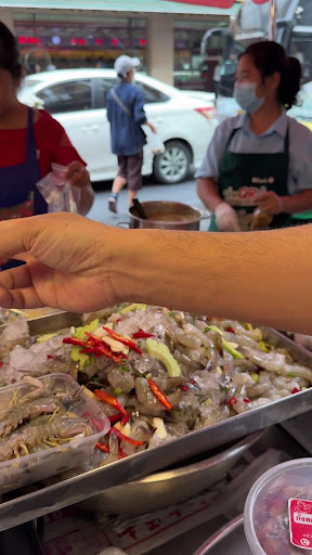 Super chilli sauce and mango salad to go with your choice of crab parts, mantis prawns or prawns. We will be having an early dinner so we skipped the oysters. Aunty speaks some mandarin and teochew, she allows you to order by number of pcs and we love that flexibility. She makes an effort to understand what we wanted and offered chilli & salad to be packed separately if we probably be hanging out for a little more. While you may wonder where’s the level of raw seafood safety, if you stand around for 5 mins you can see how fast they turn around and it’s refreshed over again. Great vibes walking around here . I recommend to eat as soon as purchased for the obvious, ask for gloves and we found a wanton noodle shop nearby who allowed us to order their noodles, drinks and enjoy da’s crab at the same time. We made sure we cleared out the crab food trash and wipe down the table ourselves to encourage the stall owner to allow others to do so 💛 Come early on a Sunday just before noon and you will enjoy Yaowarat...