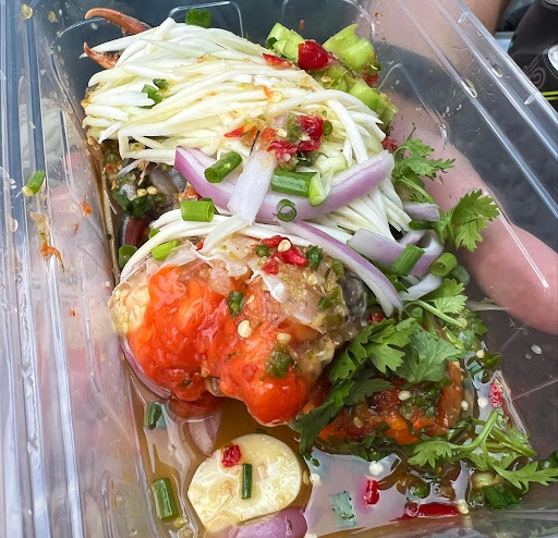 Read moreTangy, spicy, umami, creamy and very fresh. This was one of the best raw crabs I’ve ever had. Impressed by the crab but can’t say the same about their ethics since they were bold enough to scam us infront of their signboard with the actual prices stated in Thai. Charged us 600 baht for 200g while the sign stated 1400-1800 baht for 1kg so it should’ve been 280-360 baht for 200g. I’d suggest to use an app to translate the sign to ensure they’re charging you fairly especially if they know you’re not Thai. Don’t let their dishonesty deter you from this place though, their crabs really...
