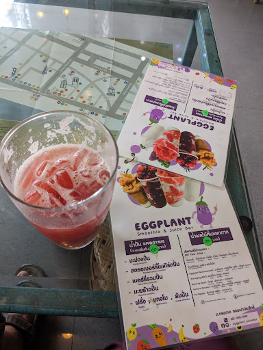 I recently stumbled upon Eggplant in Songwat, Bangkok when looking for a healthy drink to cool down on a hot day, and I was not disappointed. The shop is small and cozy, not trendily decorated but with a personal touch of the owner. I ordered the Blood Pressure Control juice, which is made with Thai orange (Thai oranges are quite different from my place, taste more like tangerines), passion fruit, apple and EGGPLANT (never tried eggplant juice before). It was surprisingly delicious and refreshing, and it gave me a much-needed energy boost. My friends were also satisfied with their orders. One more thing makes Eggplant a great choice to me is the owner. He is very helpful and he can help you find the perfect juice or smoothie for your needs. And it's so sweet of him to give me a 'Walk in Chinatown' guidebook as a gift. I enjoyed reading the book and it reminds me of him and Eggplant everytime I read. I guess I know what Thainess is now, thanks to nice people...