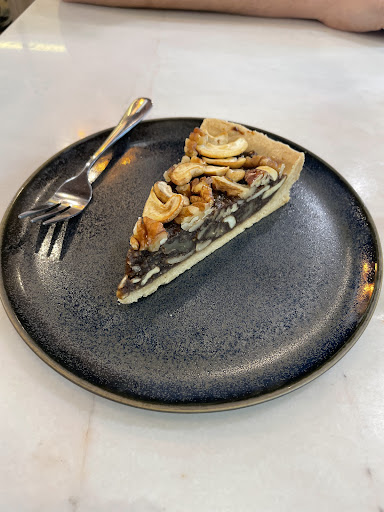 For food, everything we tried was excellent. The eggs on toast were cooked perfectly — exactly how you’d expect from an Australian-style breakfast café. I had the salmon on sourdough, which was fresh and delicious, and my husband loved his granola bowl with fresh fruit and soy yoghurt — refreshing, healthy, and generous. We also couldn’t resist trying a vegan tart with coffee and nuts, and it was absolutely yummy.