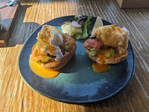 The coffee is alright, and the breakfast menu items are decent in both serving size and service, making it a reasonable choice for a casual morning meal.