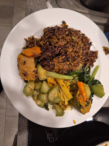 I love this place, here you will get 100% vegan Thai dishes for a very cheap price. You can choose between different prepared curry's and dishes with rice, like Massamancurry, eggplant, vegetables, yellow curry and more.