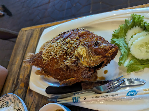 This wasn't a good experience. It is said that in Thailand you can never go wrong with "Pad-Thai", but I guess there is a first time for anything. Padthai was so plain, no flavor whatsoever, I had to add a bit of chili and sauce that was on the table just to get a little bit flavor out of it. The shrimp was still in its shell I ha do dig put the meat ... instead of spring rolls they brought us crab cakes, which would be fine, if they weren't completely drenched in oil. The only good thing was the pineapple fried rice.