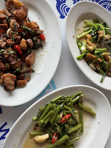 Local gems. Slow but worth the wait. Simple thai-chinese dishes with traditional homemade taste, not the overly sweet type. No menu, just order from pictures on the wall. Two aunties are highly focused on their live-cooking show at elderly speed (starting from chopping veggies, why cant they cut those ahead of time.. or maybe that’s their secret to deliciousness.) You’ll be sneezing with every spicy dishes they cook and your clothes will also smell like every dishes people order, but you’ll leave with a...