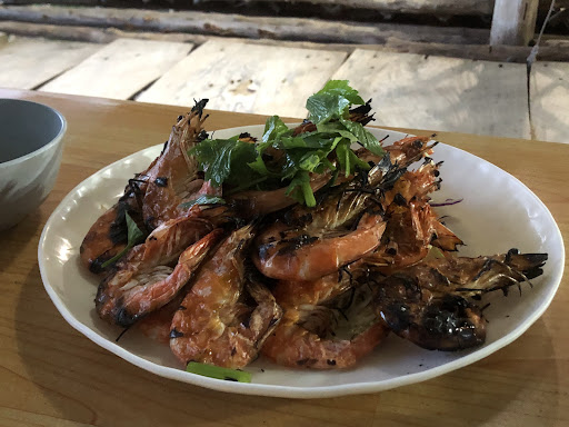 อยากกินกุ้งเผา ถามว่าโลเท่าไหร่? ผู้ชายคนรับออเดอร์ ต้องเดินไปถามในครัว แล้วเดินกลับมาตอบว่า โลละ700 ถามไปว่า กี่ตัวโล ตัวสักกี่ขีด? เขาก็เดินไปถามในครัวอีก แล้วเดินกลับมาตอบว่า ตัวใหญ่ครับ เราก็งงๆ ก็ถามไปอีกว่าใหญ่มากไหม กลัวกินไม่หมด ไม่อยากห่อกลับ เอาครึ่งโลได้ไหม? เพราะต้องเดินทางอีก เขาก็เดินไปถามอีก แล้วเดินกลับมาตอบว่า ครึ่งโลได้ พอยกมาเสริฟ ถึงได้เข้าใจว่า ทำไมไม่ตอบอะไรให้มันตรงๆ ดูจากรูปจะเห็นกุ้งเผา ตัวใหญ่กว่านิ้วก้อยนิดนึง ประมาณเกือบ 15-16 ตัวโล แม่เจ้า โลละ 700บาท ผู้ชายคนรับออเดอร์ ไม่เดินมาที่โต๊ะอีกเลย อยู่ห่างๆ ลองตะโกนคุยดู บอกน้อง ทำไมกุ้งมันตัวเล็กอย่างนี้ เขายิ้มอย่างเดียว ไม่ตอบอะไร!! เลยไม่แตะเลย บอกให้ห่อกลับ ลุงคนมารับทำท่าตกใจเล็กน้อย บอกคืนเหรอ? ไม่อยากมีเรื่อง เลยบอกห่อครับ แต่น่าจะบอกกันตรงๆว่า ไม่มีกุ้งไซส์ใหญ่ จะได้ไม่สั่ง จะได้สั่งอย่างอื่นแทน แกก็ดูตึงๆไป ส่วนอาหารอย่างอื่น ก็ ปลาหมึกผัดพริกเผา ติดหวาน มันเยิม หมูย่างมะนาว ก็ย่างไม่ค่อยดี แค่สุก แค่กินได้ ส้มตำพอกินได้ที่สุดแล้ว สรุปคือ อาหารแย่ คนขายแย่กว่า ไม่ซื่อตรง เช็คบิลออกมา 830 แพงสุดๆ นี่เขาเหมือนรู้ตัวลดราคากุ้งให้ 50 บาทนะ...
