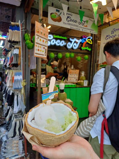 Read morei think there are 3 Coco JJ’s in the area, but their ice creams are good! i generally love coconut ice cream done right and theirs is on the spectrum towards great. there are numerous toppings you can choose from to add crunch or more flavor. i specifically chose toppings similar to the photo from their menu hahahah like pandan, red beans, peanuts, and sticky rice. it was worth it and i would’ve gotten more if i could eat more!! you should just have some skill trying to navigate the chatuchak market while eating...