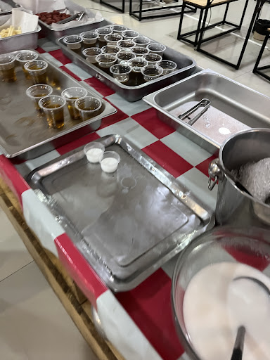 Read moreทานวันที่ 28/9/2024 บุฟเฟ่หม่าล่า มีแบบหมูกะทะและชาบู คนละ 199 บาท ทะเล+40 บาท ราคานี้รวมเครื่องดื่มและของหวาน ไอศครีม . มีโซนนั่งห้องแอร์และโซนด้านนอก ห้องแอร์ทานได้แต่แบบชาบูเท่านั้น ทานหมูกะทะต้องด้านนอกเท่านั้น มีหม้อแบบ 2 แบบด้วยทั้งชาบูและหมูกะทะ . ที่นี้มีน้ำจิ้มแบบสำเร็จและปรุงเองได้ อันนี้ชอบมาก มีน้ำจิ้มสุกกี้ 2 แบบ และน้ำจิ้มซีฟู้ด น้ำชาบูมี 4 แบบ ชาบูหม่าล่าสามารถเติมก้อนหม่าล่าเพิ่มได้ . ทะเลที่เพิ่มราคา 40 บาท มีกุ้ง ปูม้า หอยเซลล์ ท้องปลาแซลม่อน ปลาหมึก . ของทานเล่นมีพอประมาณเลย โดยรวมถือว่าคุ้มค่ะ อร่อยเลย . ที่ร้านไม่มีห้องน้ำ ต้องไปใช้บริการห้องน้ำของตลาด มีแบบฟรีและแบบหยอดเหรียญ ห้องน้ำฟรีแบบนั่งยองๆ โจกไม่ค่อยลง ห้องน้ำหยอดเหรียญ 10 บาท ติดแอร์แอร์ เป็นชักโครก...