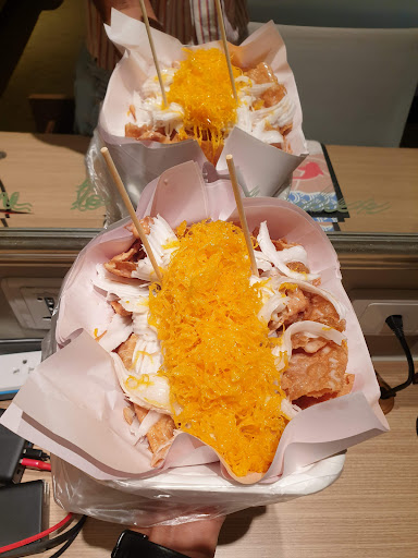 Read moreผ่านมาหลายรอบแล้วค่ะ ร้านนี้ แต่ไม่มีโอกาสแวะเลย เพราะที่จอดไม่ค่อยมี วันนี้ฤกษ์ดีดิถีมาแวะกินส้มตำ จอดรถหน้าร้านส้มตำแล้วก็เดินย้อนกลับมาซื้อ ระหว่างเดินมาก็แบบ หอมกลิ่นโรตีมาตามทางอ่ะเทอ ป้ายหน้าร้านเค้าชัดเจนมากนะคะ “ หากท่านรีบ อย่าพึ่งสั่ง เพราะการทำโรตีมีความละเอียดและขั้นตอนไในการทำ” 😄 อันนี้จิงนะ คือเรายืนดูเค้าทำ ใส่ใจรายละเอียดในขั้นตอนการทำมาก อุปการณ์การทำ แท่นวางโรตีอะไรดูสะอาดถูกสุขลักษณะมาก กินแล้วไม่กลัวท้องเสียอ่ะเทอ อร่อยตั้งแต่ยืนดูเค้าทำละมั้ง 😅 เสียดายไม่มีโต๊ะให้นั่งทานในร้าน ดูเมนูนึกว่าร้านพิซซ่าน่ะเทอ เค้ามีให้เลือก แป้งหนานุ่ม หรือบางกรอบ😄 เราชอบมะพร้าวอ่อน ฝอยทอง ก็สั่ง หนานุ่ม 1 บางกรอบ1 ไปเลยสิคะ วันนี้ใส่เกงยางยืดมา ไม่หวั่นค่ะ ทางร้านน่ารักค่ะ เสร็จแล้วก็เดินเอามาส่งที่ร้านส้มตำให้ด้วย เปิดถุงมา โอ้โห… ทอปปิ้งแน่นมากกกกกกกกก มะพร้าวอ่อน ฝอยทองคือฟูล้นจอ ชิมแป้งบางกรอบ กรุบกรอบ รสชาติอร่อย ฝอยทองก็หอมนุ่ม มะพร้าวอ่อนก็นิ่มนวล ปริมาณให้เยอะเกินราคามาก อ่ะชิมแป้งหนานุ่มต่อ โอ้โห… แป้งโรตีหนุบหนับนุ่มในปากมากเทอ อร่อยดูดนิ้วจร้า😄 เจ้าของร้านก็น่ารัก บริการดี อัธยาศรัยดี...