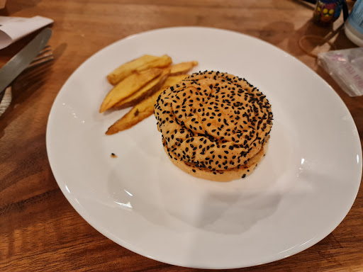 Always rode my bike by this small shop and finally decided to give it a try. Nicely surprised ☺️ I got the pork Burger 🍔 which was fresh, comes with caramelized onions! Yay and kind of like a big Mac sauce which balanced nicely. Also the bun was grilled and similar to a brioche bun which was nice, the black sesame seeds not so much. As you can see in other pics you do get a few fries but I went for the basket 🧺 and they were tasty too and btw they are hand cut fresh fries! 🍟 They would be really good with maybe a nice seasoning. And if you get to meet Jazzy the dancing little girl you get a nice dance 🩰 show with your meal! 😆.I will definitely go back to try the beef and chicken burgers. Make note here they were open on Sunday when I went and open until 11pm.. not 2am.. I told the lady but not sure if she knew what u was saying! Yummy! 🍔 🍟.The burger was 65 bt so about $2 and just over a buck for 🍟 coming in at 39 bt...