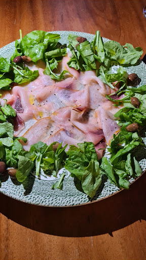 Wow, what an experience! This is not your usual big restaurant, it's the most personal dining experience ever: just one table! And we can watch the chef Marco prepare the food... Marco is a true Roman, very proud of his culture and food, and he makes just the most delicious food. First we had lightly fried zucchini flowers, what a treat! And then cold cuts and cheese for appetizers, excuse me, I meant to say San Daniele ham, a salami from nearby Rome, two different kinds of Pecorino, one with a delicate jam and one with queen bee honey... a little salad with the most delicious homegrown tomatoes and arugula. Next, a lasagna... not just an ordinary lasagna but the most delicious one I have ever had. It was also much lighter than what I had eaten elsewhere which was great as the main course was still coming: beef filet filled with Parmigiano and Parma ham, roasted in the oven. So tasty! Also the red wine reduction sauce... Desert was a deliciously light Tiramisu, coffee and grappa. We also had some excellent red wines from Marco's small but fine cellar. Besides the outstanding food, the atmosphere was also very special. It's like family, and chatting with the chef Marco and his wife was great fun, and we learned a lot about Italian cuisine...