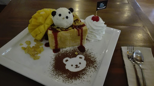 I got an espresso, a cake and after a while another americano. I was very happy with all of them. The cake was lovely, not sugary at all, and tasted fresh; the coffee was very good as well, better than Aka ahma IMO. I spent there a couple of hours on my laptop and I found all the people working there to be extremely kind and welcoming. I think the Bear Hug Cafe is a great example of what makes Thailand special: a great taste for decor, for hospitality, and for food. Totally whole-heartedly...