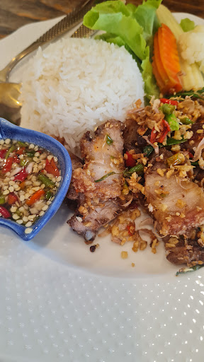 We enjoyed the food we ordered very much: Crispy Pork with salt and pepper, with rice- the pork was crispy, and it comes with some fried garlic which makes it even better. 👍 Chili paste fried rice with fried chicken - very tasty fried rice. The chicken is very tender too.