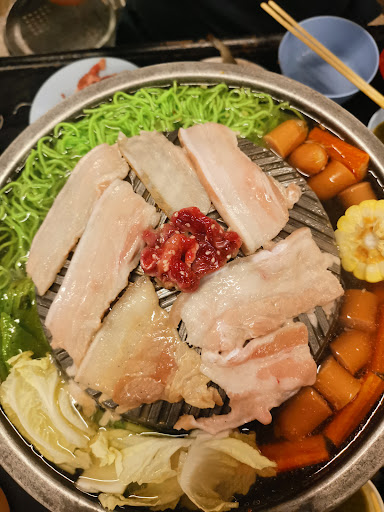 Read moreเป็นร้านนึงที่ต้องมากินทุกครั้งที่มาเชียงใหม่เพราะใกล้ที่พัก ราคาถูก และนั่งได้สบายๆมาเมื่อไรก็ได้เพราะเปิด 24 ชม.และไม่จำกัดเวลาแม้ว่ารายการหมูกระทะจะพื้นๆไม่มีอะไรพิเศษ มาครั้งนี้ (11 ต.ค.66) ปรับราคาจาก 129 บาทขึ้นเป็น 188 บาทแล้ว (เด็กสูงไม่เกิน 100 ซม.ฟรี / ไม่เกิน 130 ซม.108 บาท) แต่เพิ่มรายการรวมน้ำอัดลมให้กดเอาจากตู้และมีของทอดให้ตัก 3 อย่างแต่เหนียว ไม่กรอบและออกเค็มทุกอย่าง สังเกตุดูลูกค้าลดไปกว่าเมื่อก่อนมากกว่าครึ่ง น่าห่วงว่าถ้าลูกค้าลดไปกว่านี้อีกท่าจะแย่เพราะร้านใกล้ๆที่เปลี่ยนจากร้านเนื้อมาเป็นหมูกระทะตั้งราคาไว้แค่ 179 บาทแต่เปิดเฉพาะตอนเย็นถึงดึกไม่ได้เปิด 24 ชม.แบบร้านนี้