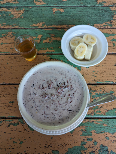 Quiet peaceful place to enjoy healthy, delicious affordable priced (cheap) food. Had a very grounding breakfast rice porridge one day which kept me energized for much of the afternoon. Creamy and served with a very flavorful honey on the side.