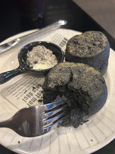 This coffee shop is located inside the golf club. So, it is fine dinning caliber decor. It ordered the famous black scone and americano. The scone was not very fresh and warmed in the microwave. But, it was very interesting and tasty. It comes along with cream cheese. I recommend it for the interesting experiences. The coffee was not as flavorful as I usually like coffee. But, still tasty coffee. It is incredibly comfortable inside. Unfortunately, it is very warm inside. Coffee and scone 272 baht. On western standards this place...