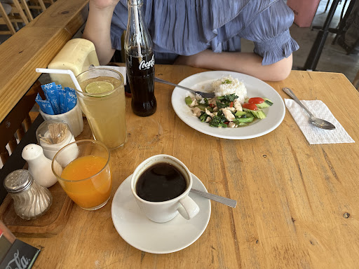 Read moreI ordered a hot Americano coffee and pineapple pancakes. Pros: The coffee was tasty enough. I was satisfied. The cafe's atmosphere and decor are very good. I sat outside at a nice black metal table with a glass table top. The interior of the cafe had a very local feel (nice!).