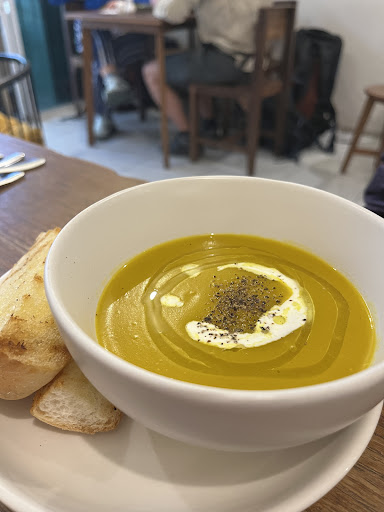 Ordered: -Pumpkin Soup 120B ($3.36)- creamy delicious! -Egg Benedict 165B ($4.62)- poached eggs were perfectly prepared atop the lightly toasted bread adorned with fresh basil yum… -French Toast 165B ($4.62)- very fresh with variety of fruits. Good amount of Nutella between the 2 toasts. Syrup was just right, perfect combo. -Chicken Garlic 165B ($4.62)- chicken breasts were moist and tasty. -Matcha 95B ($2.10) added Oat Milk 20B ($0.56) -Cappuccino 75B