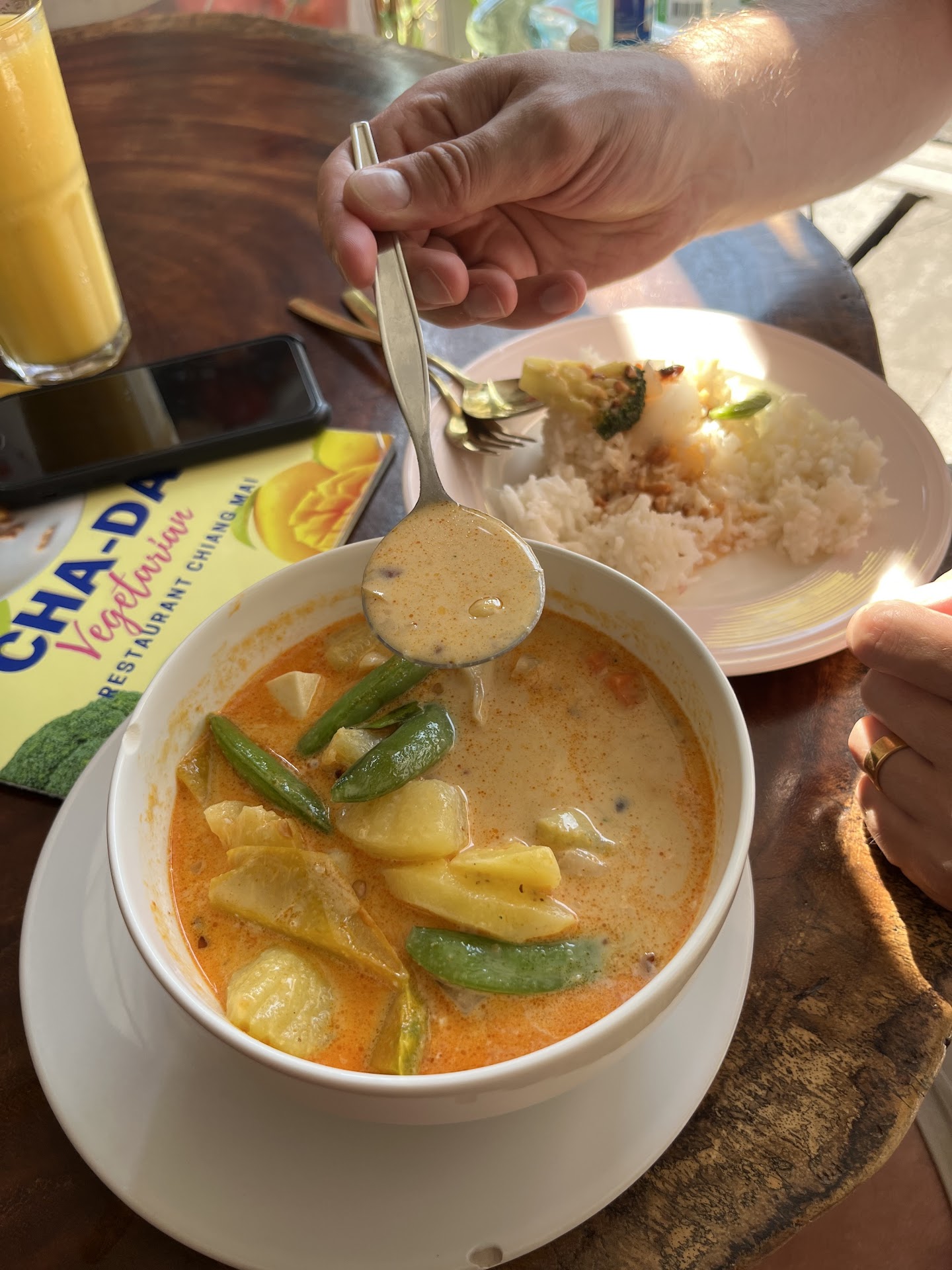 We ordered the spring rolls (forgot to take a pic), the massaman, some rice, a mango smoothie & a “lemonade” type drink which I forgot the name of.