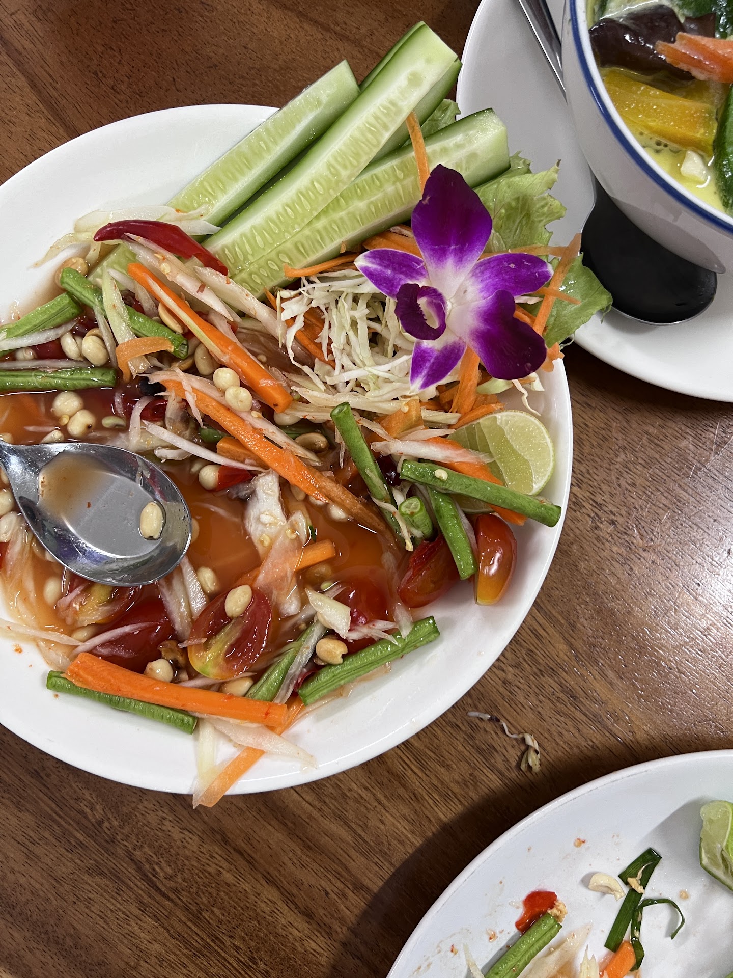 We tried the green curry, papaya salad, and pad thai. The “best” dish was pad thai but still all the tastes were very mediocre. Came here as I saw A LOT of positive reviews but later realized its mostly from foreigners so wanted to give an honest review from a local vegetarian who grew up in Thailand.