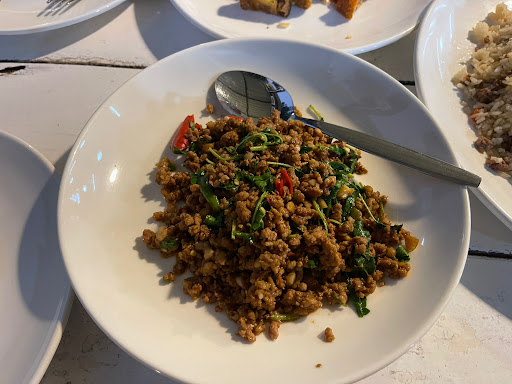 The dishes start at 50THB. Over 2 nights we had the pad kra prow, crispy pork, stir fried red curry and special beef fried rice. All were great and it was exactly what we were after.