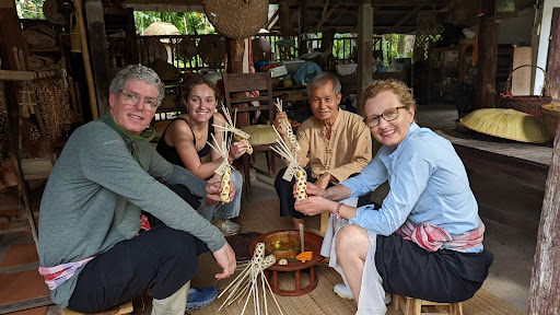 Best experience in Thailand!! So much more than just a cooking class. Pat welcomed us into his home, explained and involved us in the customs of his people. It was interesting to learn about the layers of his family's beliefs, beyond simple Buddhism. We experienced these things, and we're just told. We learned about his family as we spent time in the home to five generations of his family. It's a wonderful compound, with an outdoor kitchen, herb garden, elevated barns and a home for the remaining four generations. Pat is a very likeable person who has the heart of a teacher; he wants you to understand. He explains the benefits of the herbs, while giving you some to taste, and wrapping you with a citronella leaf to keep the mosquitoes away. We made four fun and wonderful dishes, preparing the ingredients and cooking in woks and clay pots over wood fire stoves. We tasted as we added ingredients and experienced the difference they would make. It's remarkable to prepare ingredients you are not used to cooking with and creating a dish you may have had at a restaurant a few days prior, not to mention having picked the herbs in the backyard. Pat also helped you understand the tricks to making it taste its best, and what would ruin it. The food was delicious and people were the best. Highly recommend and happy to answer...