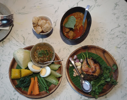 All of the dishes were unique and quite delicious. The sweet potatoes were nice and light, and the eggs with tomatoes reminded us of something we would normally have at home. The fried chilis were pretty delicious and crunchy and nicely flavoured from the pork. The star of the evening was definitely the Kanom Jeen - which I think just translates to a type of noodle. However, there were many interesting things that added a lot of nice texture and flavour. It had really unique and delicious mushrooms and the broth was rich and flavourful but not overly salty. There were also jelly-like brown cubes which turned out to be boiled chicken blood - that was an interesting experience! To me they did not taste like much. I really enjoyed the noodles.