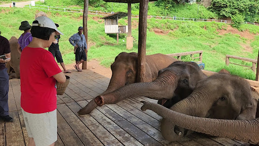 My previous post from 2 years ago, was 5 stars as below: Such a great find on the Samoeng Loop. Cafe up a steep hill off the main road where you can see the elephants roaming on the hills overlooking the beautiful scenery. For 100 baht you can feed the elephants a basket of bananas and sugar cane, aided by the guide who will take photos and videos of you with your phone. We arrived late in the day and they stayed open a few mins late to accommodate us. Such lovely people and the elephants looked very well...
