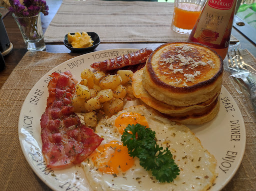 Read moreService was great and very friendly and I really wanted to write a great review but... The food was not so great - the plate looked very appetizing and huge, but the quality lacked - juice was too sweet, full of sugar, butter was not butter, pancakes, yes, fluffy, but way too fluffy, like they were made from a pancake mix, no taste at all, potato undercooked, and the whole thing was just not edible, left most of it. The sausage was probably the best out of the whole plate, the eggs were fried well, too, a little runny. Still, huge disappointment for almost 300 baht taking into account I came to enjoy the recommended pancakes 🥞. Can't understand the amazing reviews before - maybe they ate...