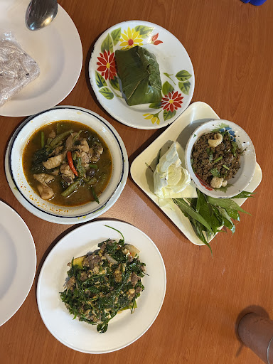 🍲 Food: Fragrant, Flavorful & Authentic The highlight was definitely the Kaeng Khae (แกงแค) 🌿 — a rich Northern Thai herbal curry packed with fresh local vegetables, herbs, and mushrooms. The broth was aromatic and refreshing, giving a real taste of the region. The Larb Kua (Northern-style minced meat salad) was wonderfully spiced, earthy, and paired perfectly with sticky rice and fresh vegetables. I also enjoyed the stir-fried local greens with egg, which was simple yet flavorful. Even the sticky rice wrapped in banana leaf added a lovely traditional touch to the meal.