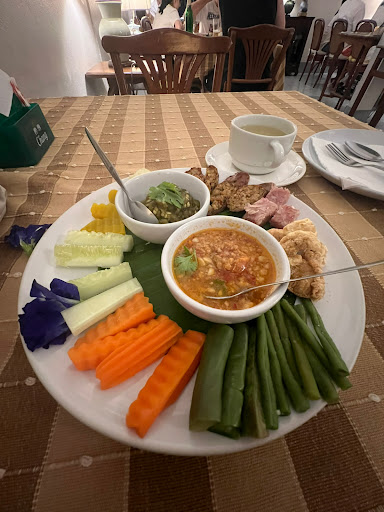 the place is located in Nimman road(near One Nimman soi)....it's a very cosy place(look like you are in Thai house for eat).....we had some small "problem" but except from this problem everything was great!! i begin with the "problem":we went in the place (in the morning)and we book a table for our dinner in the night....we book for 4 people and we go there at 8.00 pm we arrined there in 7.55 pm and we saw that some other people was sitting in our table! when we ask why is that happening,they told us:"do not worry...they leaving in 5 minutes...they already ask for the bill"....and theuy offer us another table (so we do not stand) until they other people leave....to tell you the truth,i got mad about this...the other company left at 8.15 pm...so we waited in another table 15 minutes....after they leave they clean up the table and we transfer there i know some people say that is not important but what is the meaning of booking a table???it's not to wait !!! anyway....except that incident everything was great...the food very good(this is a Thai reaturant...so no western food)...the decor also nice(cosy)....and the prices very good(i could say almost cheap)....,,very good service from the staff also..... the place is closing 10.30 pm(if i am not mistaken)...so you betetr go early to eat your Thai Food TIP:I tried the new Chang Beer Champagne(it is beer in a bottle of Champagne....the staff told us that is made the same way the make champagne...and of course more expensive than the normal beer) Guys....it was the same taste like normal Chang Beer!!!!so...you do not get fooled and order this!!!order normal Chang...
