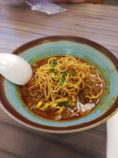 Well, I must say I was hesitant about eating here after reading reviews. However, it was highly recommended by Frank from Fashion King here in Chiang Mai who swore by it so, we listened to his advice. And... We were not disappointed at all with our meal. A couple of things, this restaurant is in the airport, it is cafeteria like sitting, I wasn't really expecting much. However, it was packed and not full of tourists. That is my first sign of a good place to eat. We managed to find a seat and with our backpacks, it was a little tight. My son went up to order and pay for the meal and sat back down. A short while later our food arrived. It was excellent. May be a little too spicy for some people, but for a majority of the Asians I know including my family, it was just perfect. Chicken was tender, come off the bone and easy to peel the skin away (if you don't want to eat the skin). Noodles had perfect texture and the broth flavourful. Portion size was decent and the price was higher than say, street/curbside vendors, but still a good deal. 149 baht for a chicken khao soi. I did not add any other tabletop spices that were available which I normally do. I have a diverse pallate and must say it tasted authentic to me, I'm not Thai so I cannot confirm that statement. Regardless, if I'm back here again, I would definitely eat here again. I...