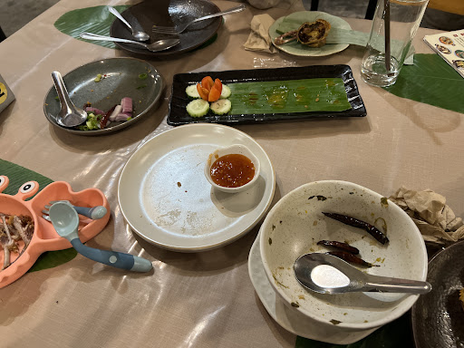 I ordered several dishes, including grilled pork neck (kho moo yang), crab roe dip (ong pu), spicy and sour soup (tom saab), and fried chicken with fish sauce. Every dish was full of flavor, perfectly cooked, and well-balanced in taste. The ingredients were fresh, and the seasoning was just right—not too salty or spicy unless you ask for it.