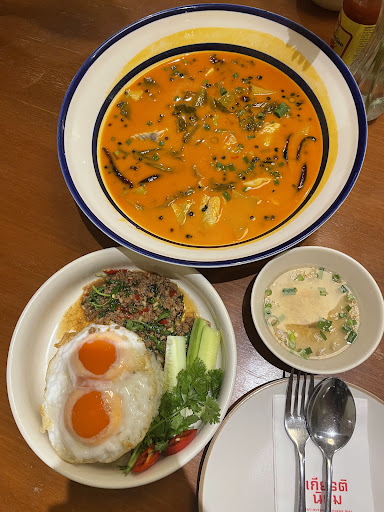 went here for our new year dinner; expecting it to be a memorable one due to the ratings and reviews; when we arrived the restaurant was pact but had 2 small tables left which could accomodate us. we ordered 7 dishes food took about 15mins -fried chicken (very soggy but taste was edible) -steak (this was a strange one; beef was oily and it was between frozen and medium cooked which left the middle part black) -thai herbs fried chicken (on the saltier side) -minced pork tofu soup (this was ok, not bad) -mushroom tempura (very oily and mushy at the same time no crunch at all no seasoing too) -stir fried vegetable -wok fried instant noodles with salted egg (noodle was soggy and extremely salty)
