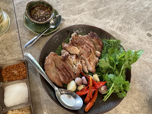 No wonder they didn’t get Michelin for 2025. Honestly, it’s surprising they ever had it if previous meals were anything like this in terms of taste and quality. They really don’t know how to prepare beef properly—it was tough and filled with cartilage (those gristly parts you chew endlessly but can neither break down nor swallow). Out of the four dishes we ordered, the only decent one was the grilled pork, but even that had too little sauce. Speaking of sauce, we ordered both beef and pork, yet they only provided one shared sauce to dip both meats, when each type clearly deserves its own.