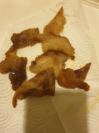 Ordered their Stir Fried Noodles with Chicken and added an egg and deep fried chicken skin. Added their appetiser Pork Satay with Toast. Total bill with Ice Milk Tea came to 230 baht.