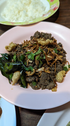 Read moreI stumbled upon this place while heading to the South gate. What caught my eye is that there were many locals eating here. Don't be put off by the three tables that you see, there's a lot more space inside. I got the cooked chicken laab (฿65) which was so flavourful, especially when eaten with the fried shallots. Be sure to get a plate of rice (฿10) to go with it. One should also try the Sai Ua (฿75) which was a rather large portion and was fragrant. I was also excited to try the ab moo (฿40) which is grilled pork in banana leaf. The strong taste of lemongrass and shrimp paste reminded me of the Peranakan dish otah. Overall a very good and affordable meal here, though I wished there were some vegetable options to balance out this very...