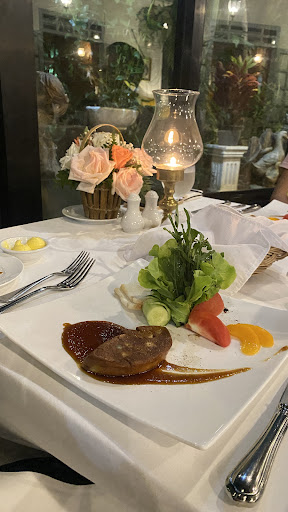Read moreThrowback to good old fashioned French dining - set in a lovely house with glass conservatory amidst sprawling gardens. Live music with pianist & vocalist a bit of an 80s throwback - definitely a dress-up date night venue! We enjoyed the fabulous full service starting with a generous sliver of home-made amuse-bouche of foie gras served on toast accompanied by an ingenious walnut fruit macaron, beautiful smooth house red Cabernet Syrah, starters of mussels in a pot so juicy and tender swimming in herby cream soup mopped up with bread. Hubby’s poached egg came a little overcooked and the chef himself was gracious enough to bring out a fresh serving. Main course arrived with the obligatory silver lids lifted off in unison by two waiters to reveal duck confit, mashed potatoes and spinach in cherry sauce cooked to crispy perfection (melt in the mouth meat!) and fresh pasta lobster ravioli drenched in delicious bisquey sauce. To end our gluttony, we enjoyed the caramelised apple tarte tatin with vanilla ice cream and they gifted us a light, fluffy strawberry bavarois cake! A lovely evening and delicious food with great service in a romantic, old...