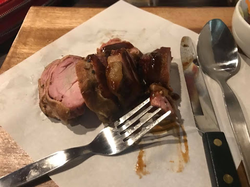 I ordered Bacon wrapped tenderloin with a side of Mac and cheese, while the husband, got a plate of pulled pork and Texas beans for his sides.