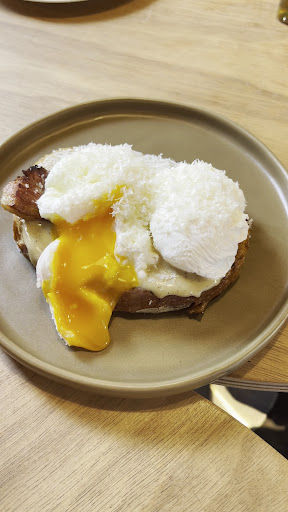 Poached eggs with bacon and Parmesan - 11 out of 10. This is simply the best breakfast you’ll find anywhere. The genius of grated Parmesan to collect all the runny egg yolk makes the whole dish.