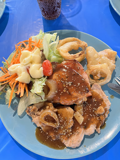 Read moreร้านอยู่ในซอยประมาณ 1.5 กม จากถนนใหญ่ แนะนำให้ไปตั้งแต่ 17:00 น เจ้าของทำกันเอง 2 คนไม่มีลูกมือ อาหารจึงเตรียมได้ไม่มากนัก ไปช้า หลัง 20:00 ของหมดนะจ๊ะ วันที่ไปอาหารประกอบด้วยสเต็ก หมู ปลา ไก่ย่าง ไม่มีซี่โครง ไส้กรอก สปาเกตตี สลัด รวมน้ำอัดลม ไอติมดูด รสชาติดี เจ้าของอัธยาสัยดี เติมของตลอดไม่มีกั๊ก ของจึงหมดเร็ว ส่วนตัวสองจานอิ่มแล้ว เนื้อหมูนุ่ม ไก่ย่างดี น้ำซอสเค็มไปหน่อย ของทอดอมน้ำมันไปนิด สลัดผักสดใหม่ คนละ 149 บาทคุ้มมาก...