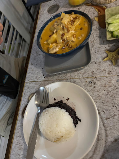 Rating the vegetarian Tom Yum here. It was nice that the owner was honest about which dishes were 100% vegetarian and which could have animal broth. Tom Yum passes the test. It was good and very spicy, which I liked. At the same time, the amount of ginger and lemongrass and lemon laves is way out of proportion. I like the taste, but the actual pieces you'll have to spit out every other sip because there's just too much of it, objectively speaking. It does disrupt the dining experience in my opinion.