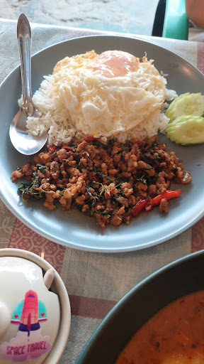 Ordered the following items: Stir-fried morning glory: You’re in Thailand so I guess you gotta get this. Good source of fiber so you don’t get constipated. Seasoning was on point and vegetables were very tender Chicken massaman curry (small): Super flavorful curry. A lot of effort went into making this and it definitely shows. It’s only very mildly spicy, so it’s perfect for those who can’t handle spicy food. Also, a large size means LARGE!! A couple seated next to us ordered a large and their bowl was the size of a pizza. So maybe don’t do that unless you’re really hungry Chicken Khao soi: Again, really flavorful soup like the massaman curry. The soup tastes similar to the massaman curry, but slightly different. You also get a lime and some toppings which I recommend adding Tom yum goong: We got the Tom yum with shrimps. Shrimp wasn’t super fresh but still tasty. Again, the soup was really good. I guess this place is just really good at making soup. It’s slightly spicy and the spice builds up, but the soup is so good that you just want to keep drinking it