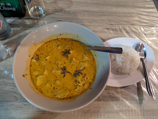 Ordered the following items: Stir-fried morning glory: You’re in Thailand so I guess you gotta get this. Good source of fiber so you don’t get constipated. Seasoning was on point and vegetables were very tender Chicken massaman curry (small): Super flavorful curry. A lot of effort went into making this and it definitely shows. It’s only very mildly spicy, so it’s perfect for those who can’t handle spicy food. Also, a large size means LARGE!! A couple seated next to us ordered a large and their bowl was the size of a pizza. So maybe don’t do that unless you’re really hungry Chicken Khao soi: Again, really flavorful soup like the massaman curry. The soup tastes similar to the massaman curry, but slightly different. You also get a lime and some toppings which I recommend adding Tom yum goong: We got the Tom yum with shrimps. Shrimp wasn’t super fresh but still tasty. Again, the soup was really good. I guess this place is just really good at making soup. It’s slightly spicy and the spice builds up, but the soup is so good that you just want to keep drinking it