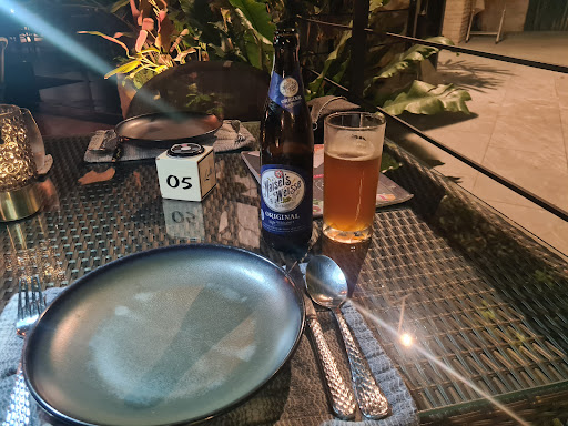 Sadly I have some things to complain: The glass for wheat beer should contain all the beer of the bottle. No idea why it's so difficult to bring first the hors d'oeuvres and later the main dish. The cocktail tissues instead of larger ones are not on the level of this place.