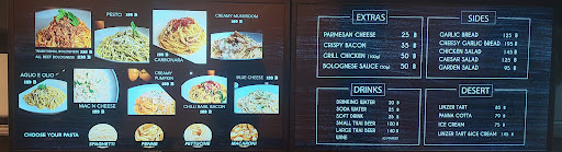 The menu offers a variety of classic sauces paired with your choice of pasta. We savored the Pomodoro on fettuccine and Bolognese with penne, both rich in flavor and perfectly balanced. The grilled chicken side was tender and flavorful, complementing the pomodoro. A glass of seeet white wine enhanced the meal, and the garlic bread was a perfect side. We were too full for sides from the portions but desserts looked bomb.