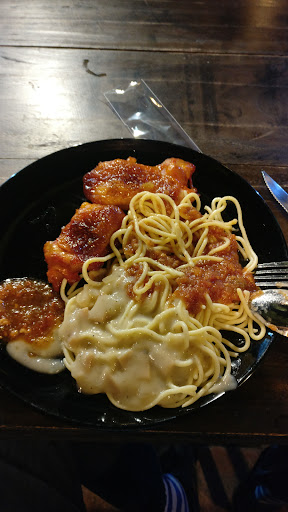 Read moreAhem. So, that would be 4 stars for the price. It's less for the food tho' which is very much in line with the price (not the price-related rating). I guess nobody expects gourmet here and rightly so. It's defo possible to eat what's in the 140 THB all you can eat buffet, nothing wrong with it, but the spaghetti sauce could handle a bit more love (and spices, and less sugar), the sausage would honor any given 7-11, salad bar looks decent - the four big buckets of dressing somehow would also be suitable in an army canteen... Nevertheless the place seems to be a hit with the local youth, the setting in the retro styled garden is reasonably cute, as no frills budget option this is probably...