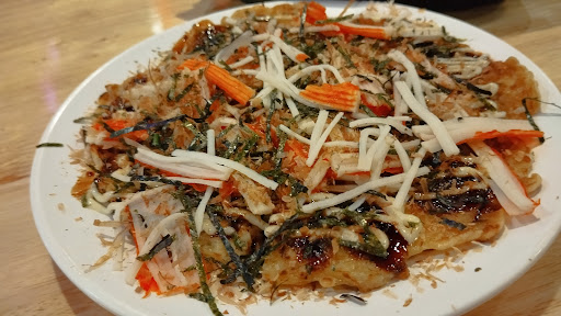 วันนี้สั่ง 3 อย่าง โอโคะโนะมิยากิ (พิซซ่าญี่ปุ่น) ไม่มีในเมนูนะครับ เป็นเมนูรีเควสต์ เพราะชอบมาก พิซซ่าญี่ปุ่นคือชีวิต... ไม่ได้กินมานานมาก นับตั้งแต่ไปกรุงเทพรอบก่อนก็ 3-4 ปีแล้ว มาในรูปแบบจานเล็กๆ แป้งไม่หนามากนัก ปลาโอขูด โรยด้วยผงสาหร่าย บนปูอัด รสชาตินวลๆ ถ้าจิ้มซอสหวานรสชาติดีดขึ้นเลยครับ