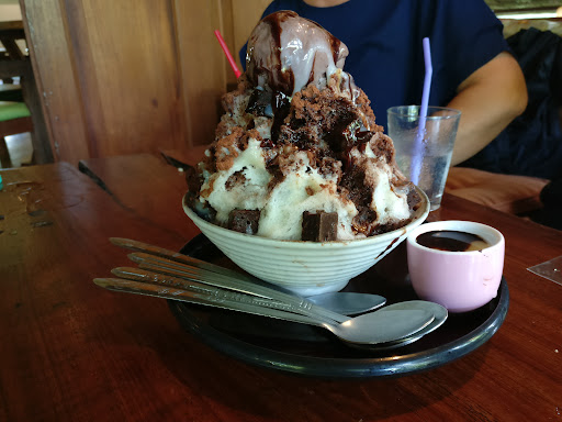 The shop is in a countryside road, greeny natural environment and quiet place. There are plenty of choices, you can order ala carte (thai food dishes), western food (spaghetti, chicken chop, etc). Fruit juice, coffee and tea are available here too. They also serve desert. For food, i ordered thai dishes ala carte, the taste is nice! I would recommend thai food rather than Western, as i think we should have local food here. Besides that, i also ordered desert, for me it is very sweet (typical thai sweet, haha). The environment is good, greeny and immerged in natural. Overall, the cafe is good to visit if you're on the way...