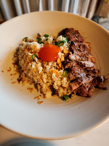 The plate of fried rice came with a slab of grilled beef, medium and sliced. The rice itself was garnished with crispy fried garlic and and egg yolk. I wish the yolk would be runny but it was actually almost fully cooked. The steak was fantastic, tender and juicy. The crispy garlic added more flavours to the rice as did the pickled green chilli, although I wish the latter could be crunchy and not soft and marshy. Its sourness did help to cut through the greasiness of the fried rice though.